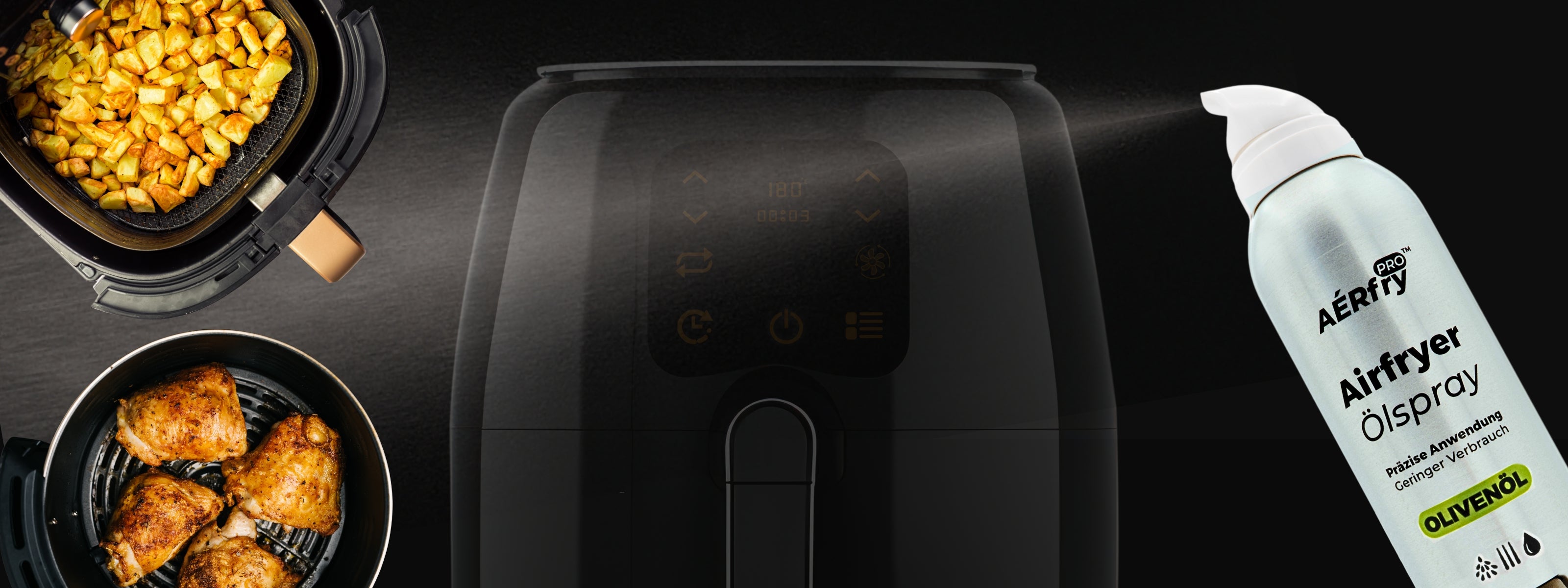 Die erste Sprühlösung für Heißluftfritteusen, die Design, Gesundheit & Funktion perfekt vereint.